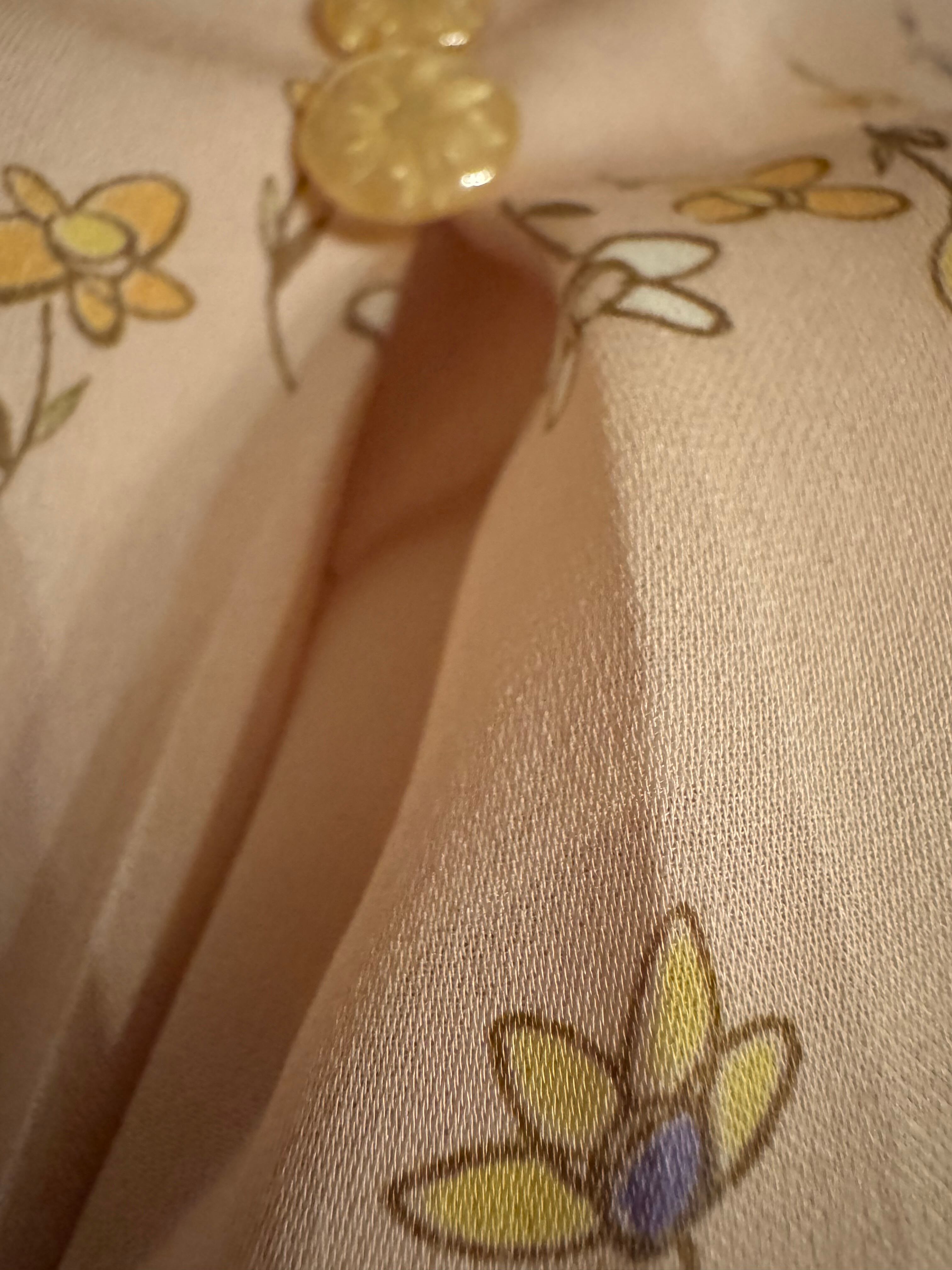 80s vintage flower pattern smoky pink rayon blouse