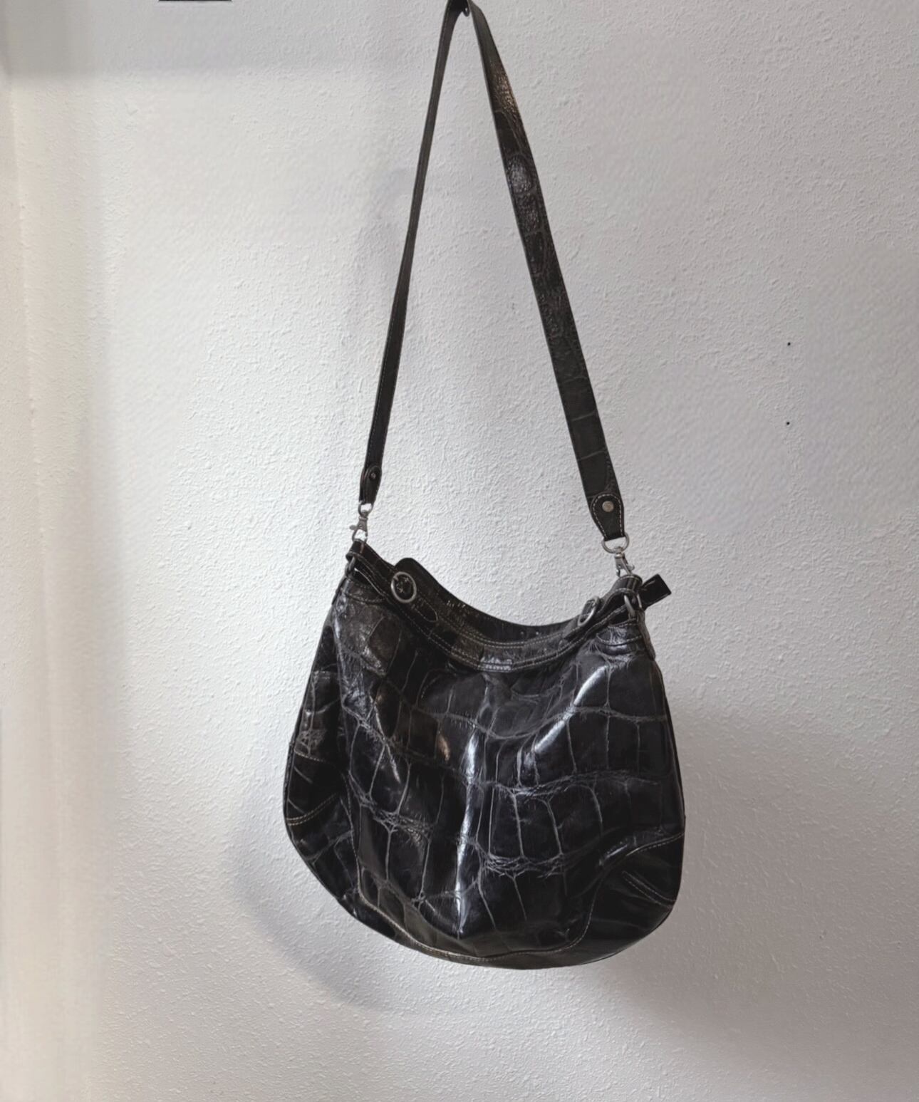 爬虫類レザー スネーク 蛇柄 型押しレザー シボ革 スタッズ シルバー金具 本革バッグ レザーバッグ オールレザー 平成ファッション サブカル サブカルファッション サブカルチャー ストリート ヴィンテージ ビンテージ ワンショルダー メンズバッグ ハンドバッグ レザーバッグ