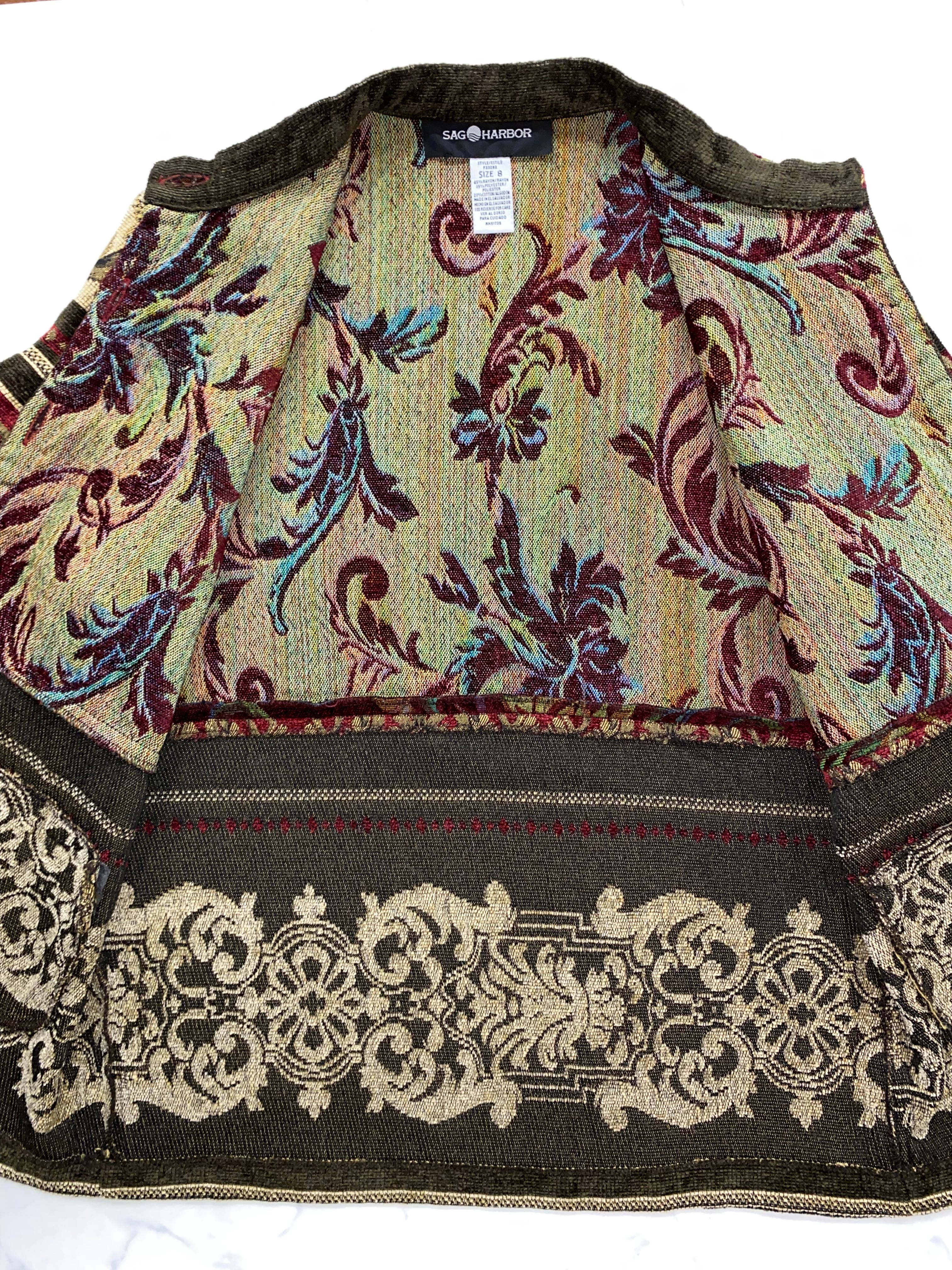 vintage【SAG HARBOR】gobelin patterned jacket ゴブラン 総柄ジャケット バーガンディ ワインレッド系 神宮寺勇太