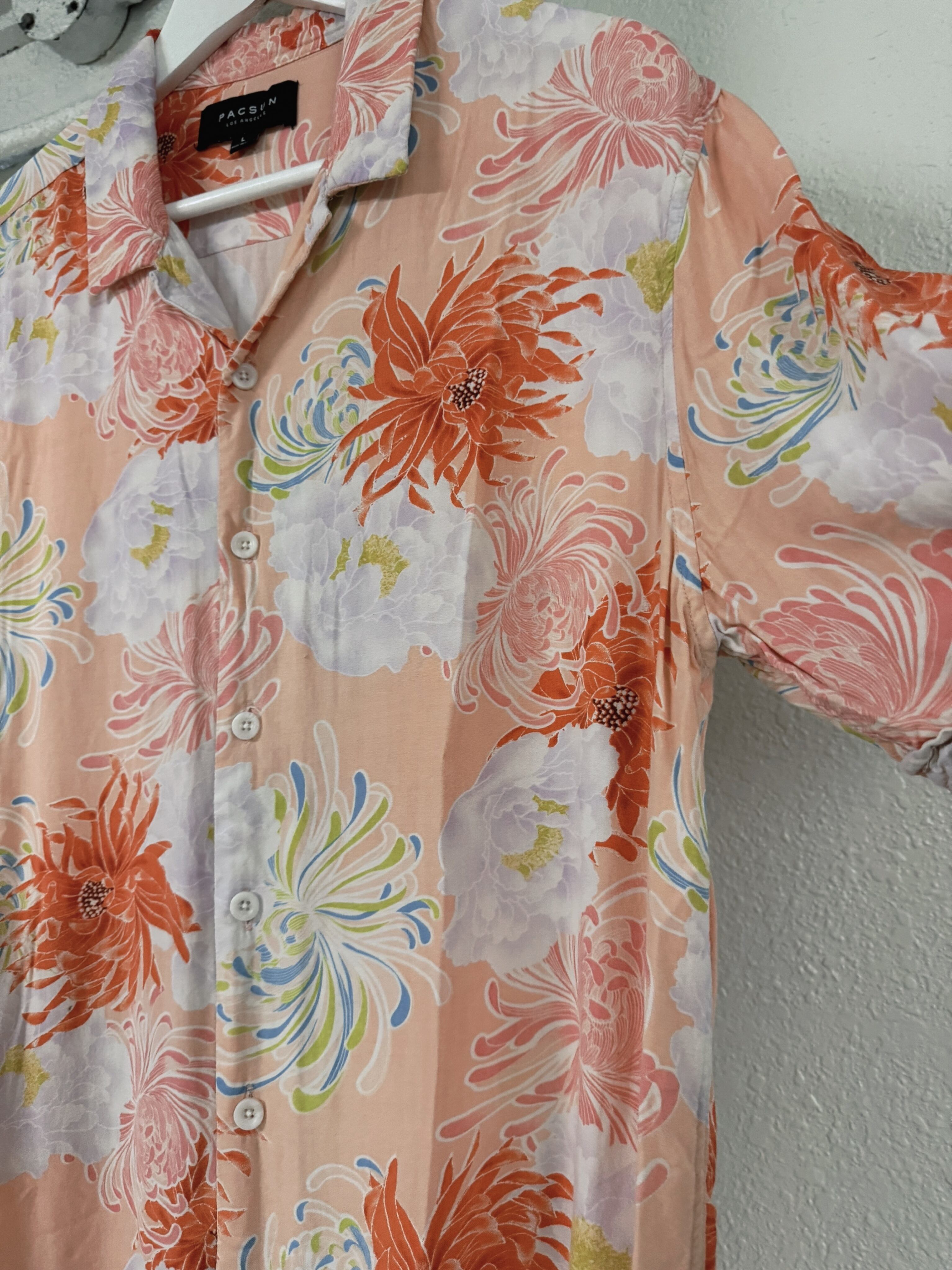 vintage PUCSUN Hawaiian Floral Aloha shirt レーヨン アロハシャツ ビンテージアロハ 菊 花柄 フラワー サーモン
